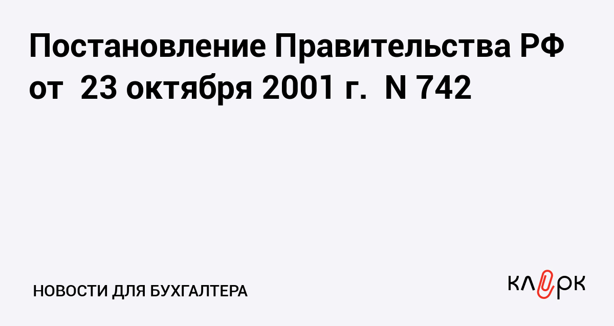 Постановление Правительства РФ от 23 октября 2001 г. N 742