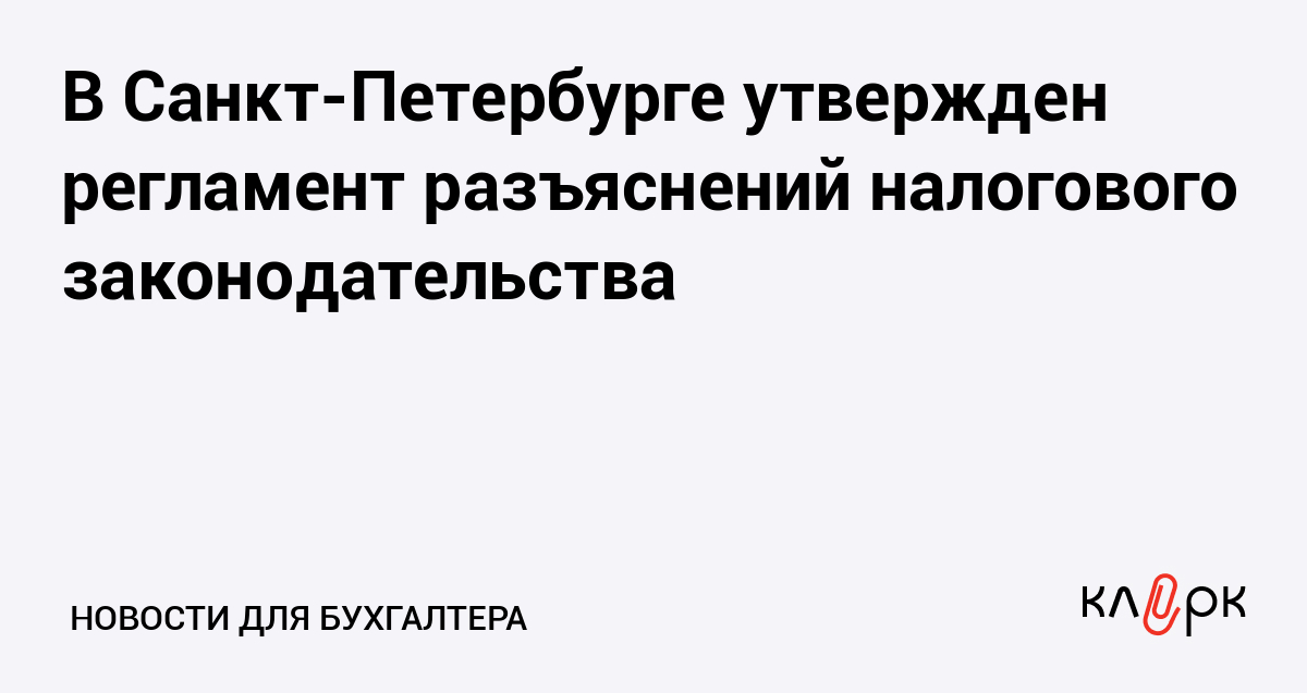 В Санкт-Петербурге утвержден регламент разъяснений налогового законодательства
