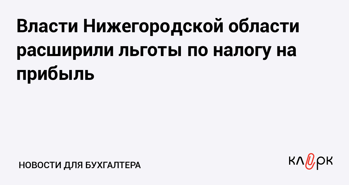 Власти Нижегородской области расширили льготы по налогу на прибыль