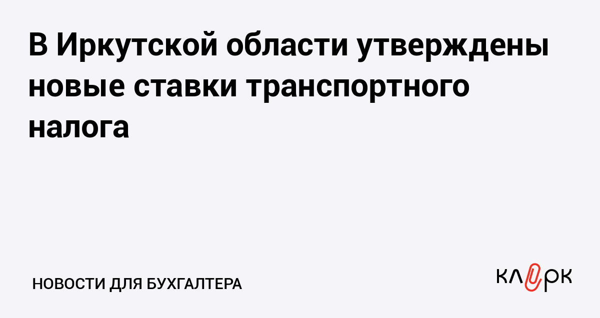 В Иркутской области региональным Законом № 111-ОЗ от 08.11.2010 с 1 января 2011 года утверждены новые ставки транспортного налога.