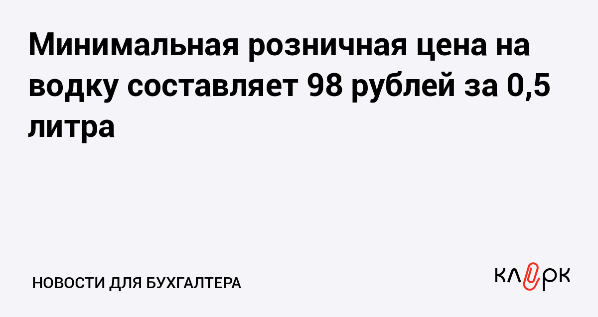 С 1 января 2011 года минимальная цена на водку для розничной продажи, производимую или ввозимую на территорию России, установлена в размере 98,00 рублей за 0,5 литра готовой продукции.