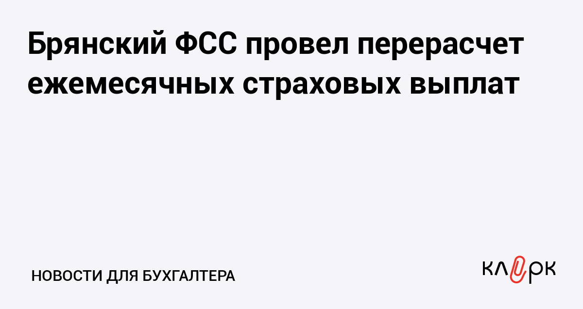 Брянский ФСС провел перерасчет ежемесячных страховых выплат