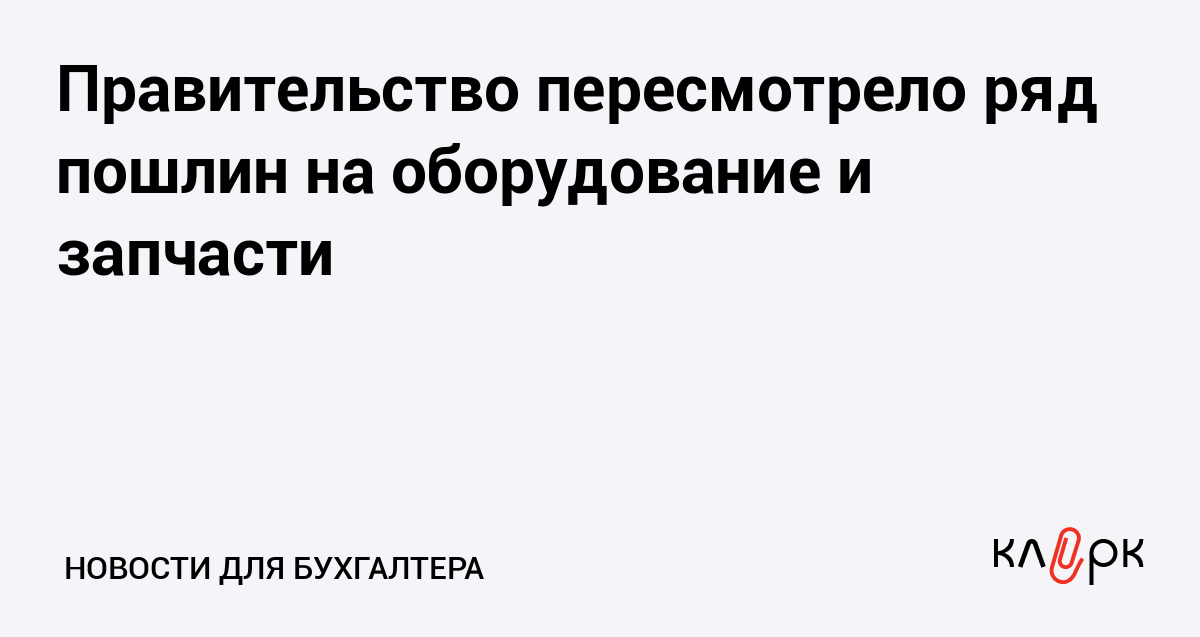 Правительство пересмотрело ряд пошлин на оборудование и запчасти
