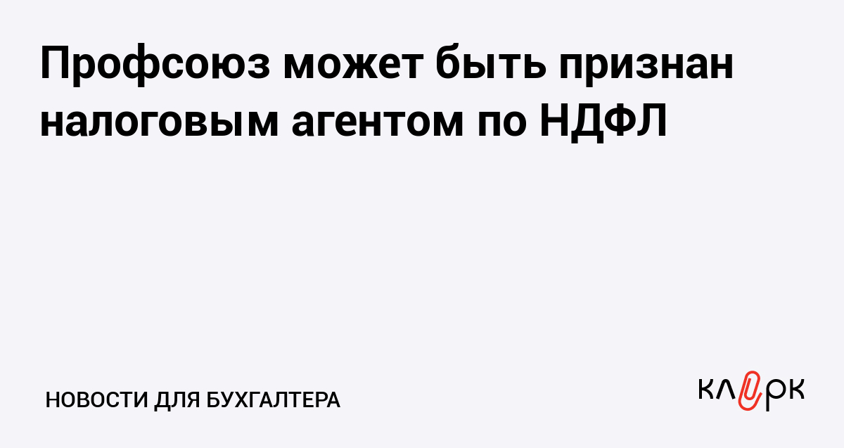 Профсоюз может быть признан налоговым агентом по НДФЛ