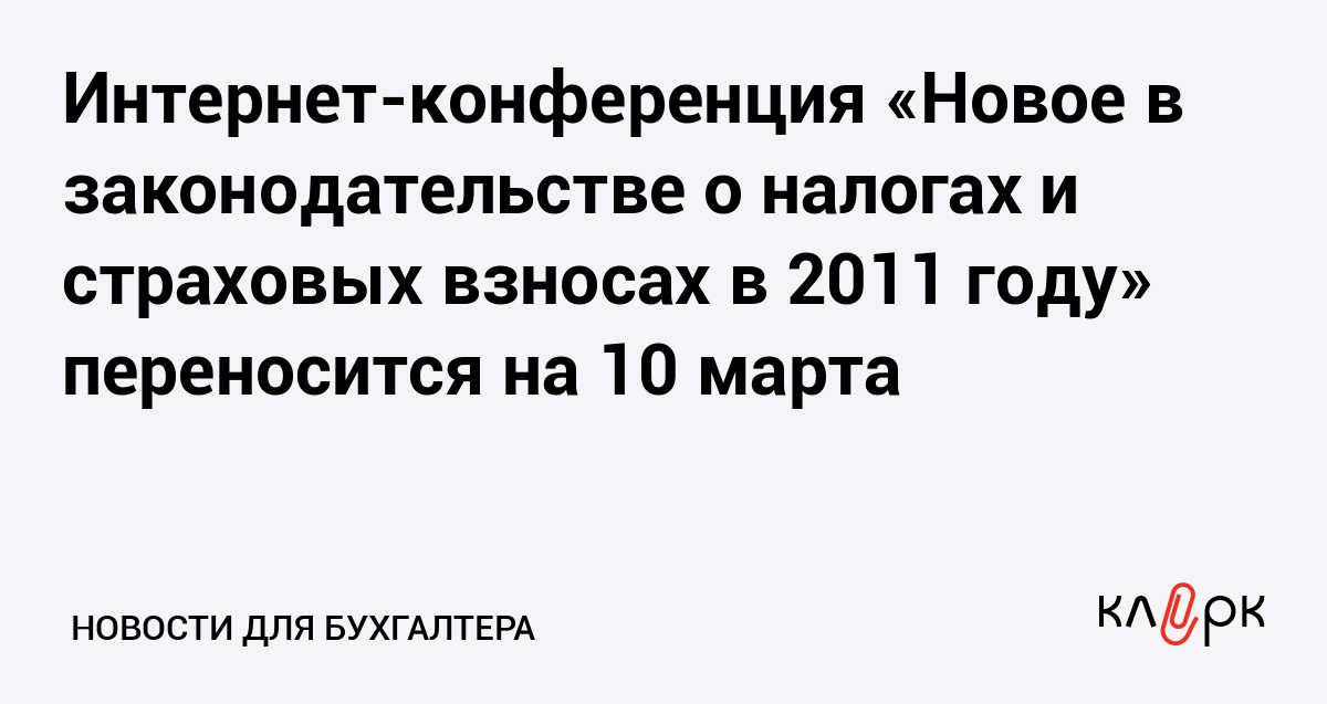 Интернет-конференция «Новое в законодательстве о налогах и страховых взносах в 2011 году» переносится на 10 марта