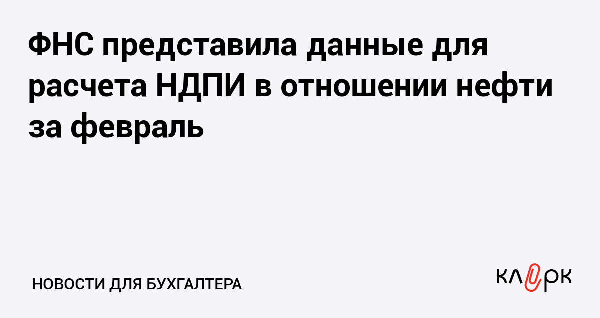 ФНС представила данные для расчета НДПИ в отношении нефти за февраль