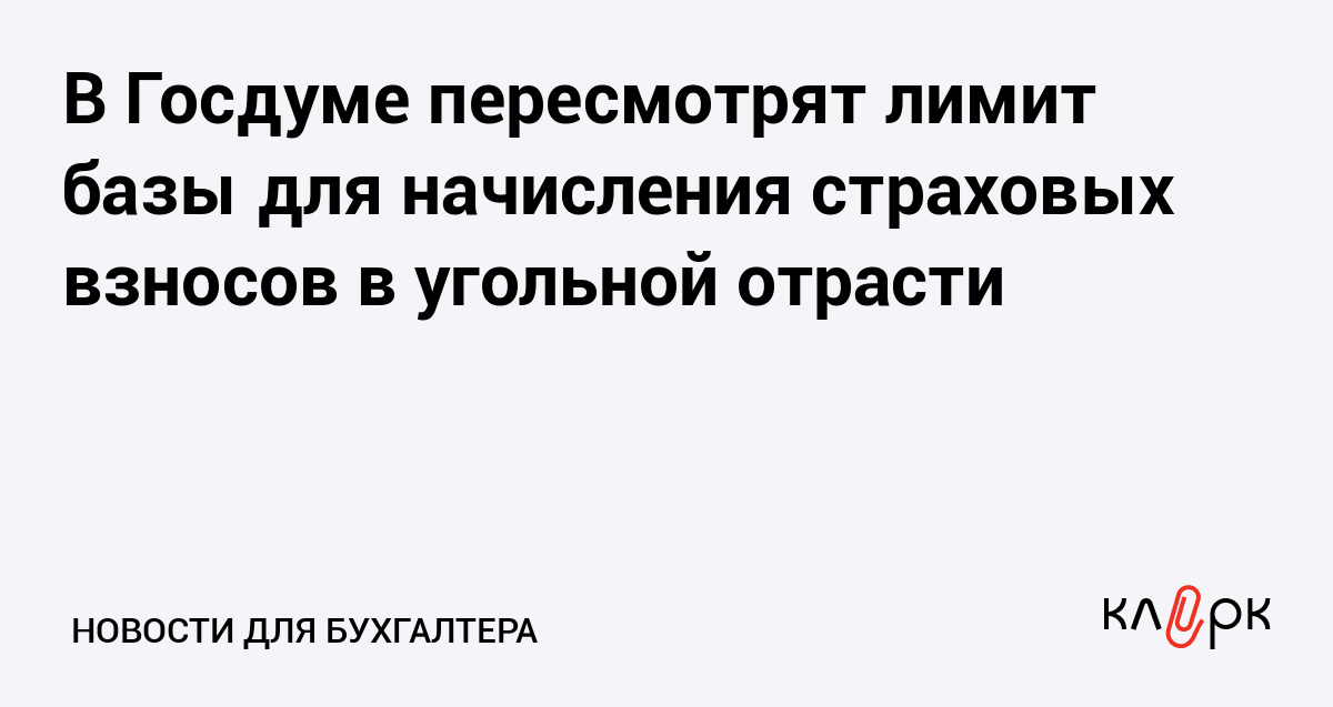 В Госдуме пересмотрят лимит базы для начисления страховых взносов в угольной отрасти