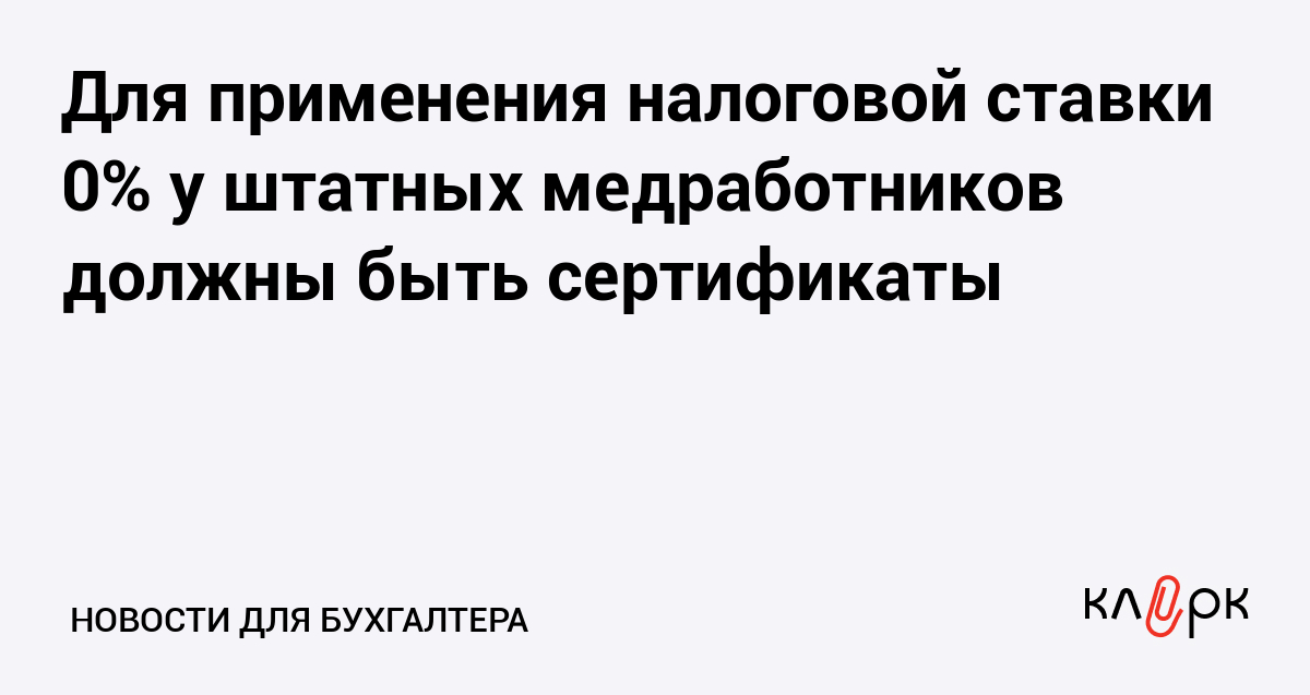 Для применения налоговой ставки 0% у штатных медработников должны быть сертификаты
