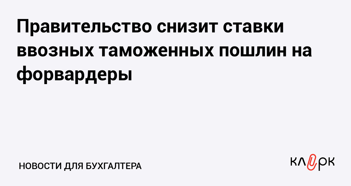 Правительство снизит ставки ввозных таможенных пошлин на форвардеры