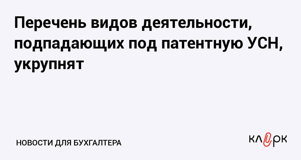 Перечень видов деятельности, подпадающих под патентную УСН, укрупнят