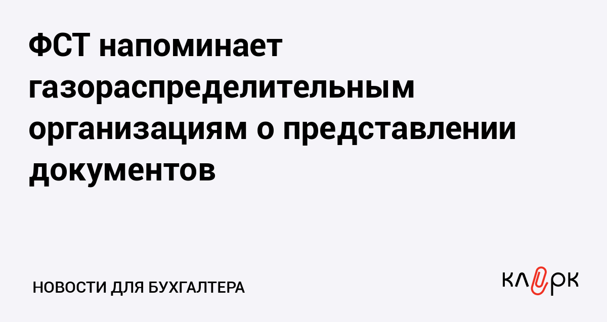 ФСТ напоминает газораспределительным организациям о представлении документов