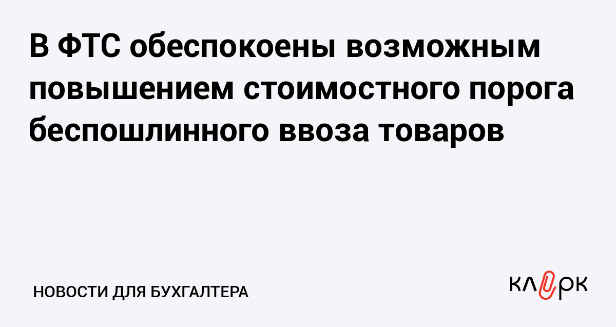 В ФТС обеспокоены возможным повышением стоимостного порога беспошлинного ввоза товаров
