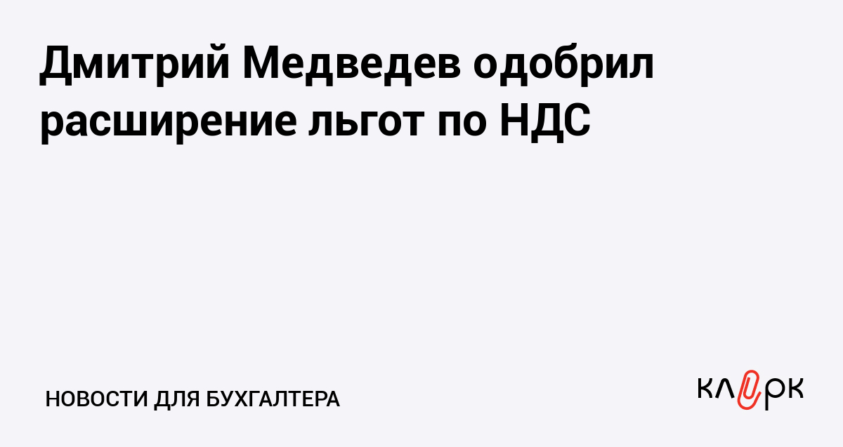 Дмитрий Медведев одобрил расширение льгот по НДС