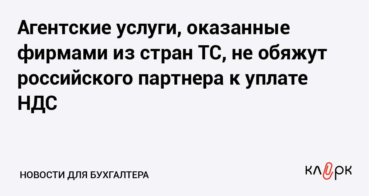 Агентские услуги, оказанные фирмами из стран ТС, не обяжут российского партнера к уплате НДС