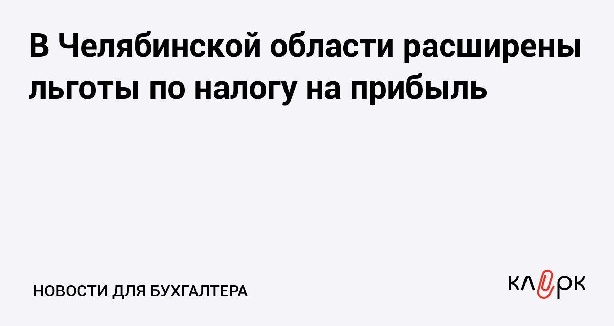В Челябинской области расширены льготы по налогу на прибыль