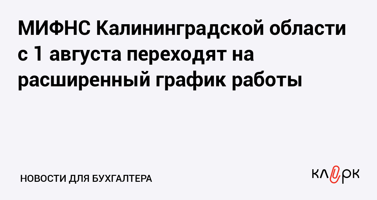 МИФНС Калининградской области с 1 августа переходят на расширенный график работы