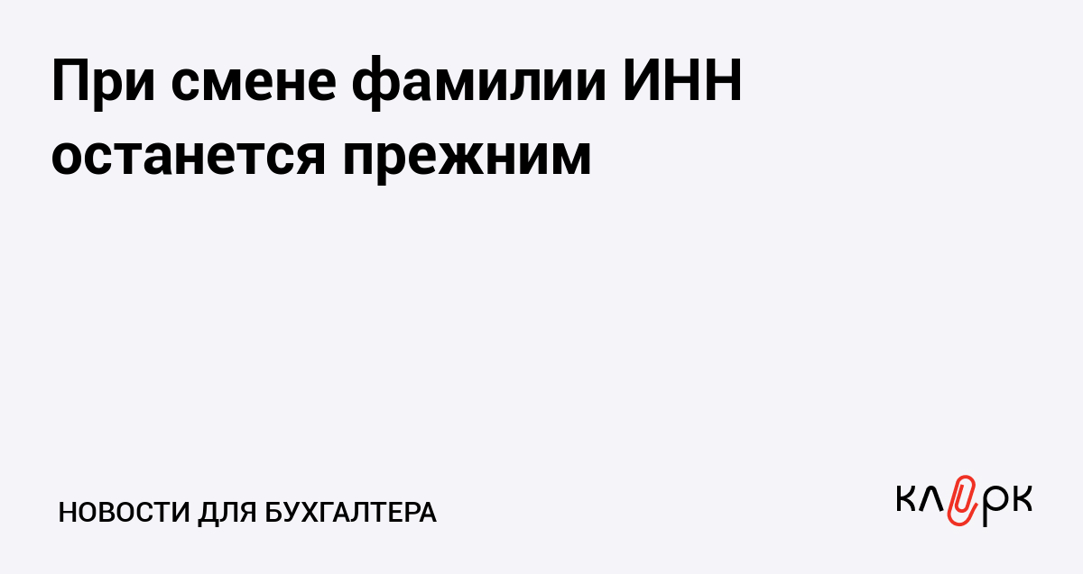 Идентификационный номер налогоплательщика (ИНН) при изменении фамилии остается прежним. Об этом сообщает УФНС по Санкт-Петербургу на ведомственном сайте.