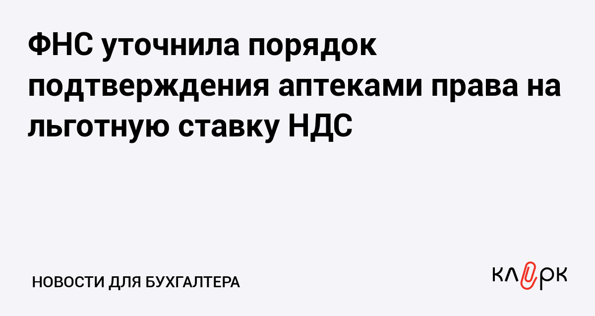 ФНС уточнила порядок подтверждения аптеками права на льготную ставку НДС