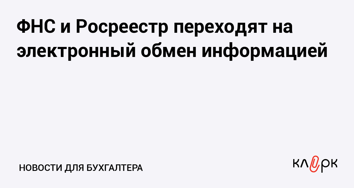 ФНС РФ и Росреестр подписали совместный приказ № П/302/ММВ-7-11/495@, который предусматривает переход с 01.09.2011 на обмен сведениями в электронном виде о зарегистрированных правах на недвижимое имущество (в том числе земельные участки) и сделках с ним, правообладателях недвижимого имущества и об объектах недвижимого имущества в виде единого информационного массива.