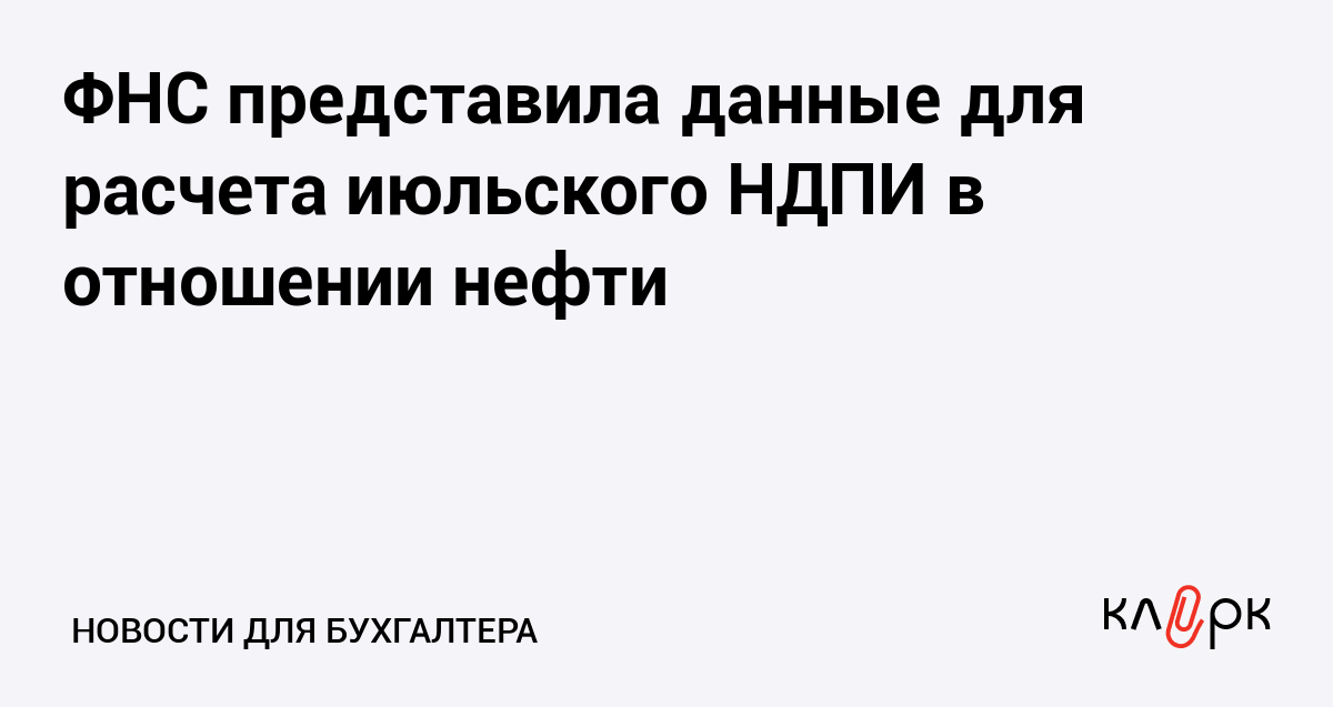ФНС представила данные для расчета июльского НДПИ в отношении нефти