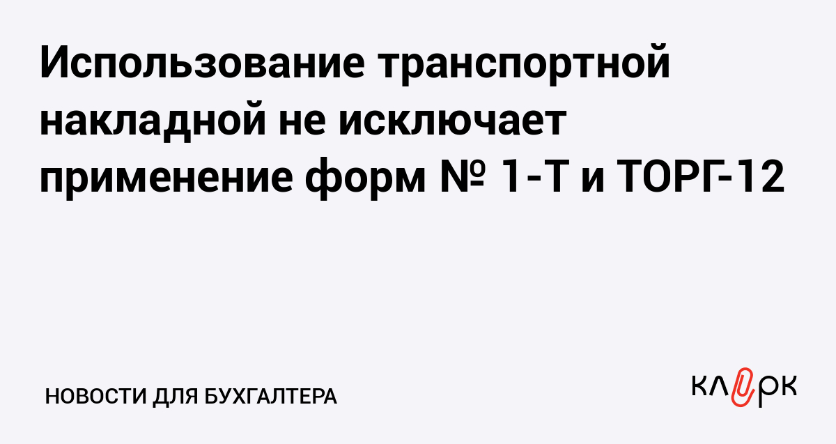 Использование транспортной накладной не исключает применение форм № 1-Т и ТОРГ-12