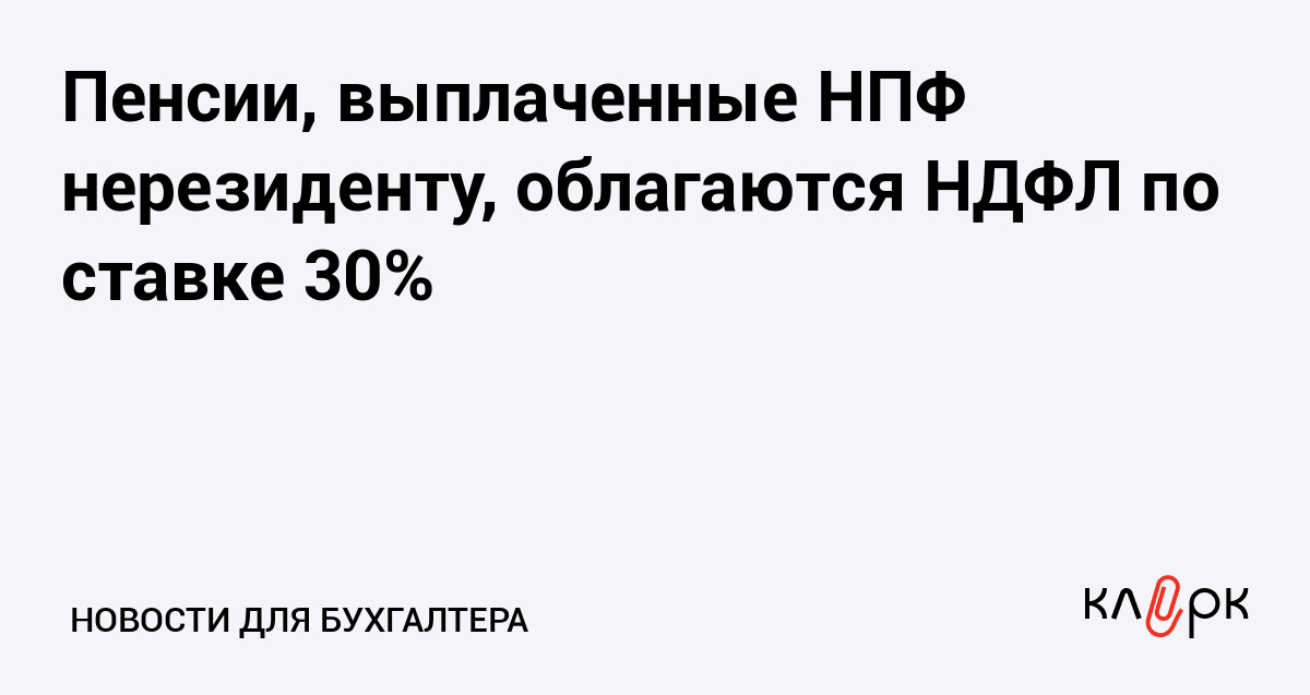 Пенсии, выплаченные НПФ нерезиденту, облагаются НДФЛ по ставке 30%