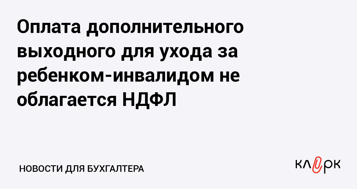 Оплата дополнительного выходного для ухода за ребенком-инвалидом не облагается НДФЛ