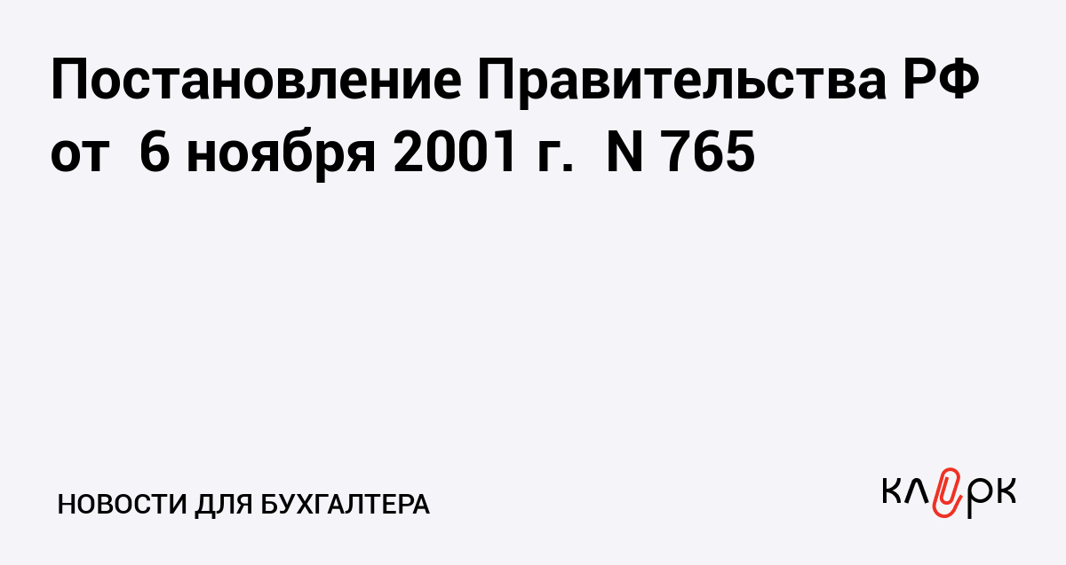 Постановление Правительства РФ от 6 ноября 2001 г. N 765