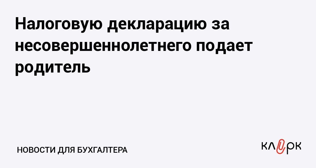 Налоговую декларацию за несовершеннолетнего подает родитель