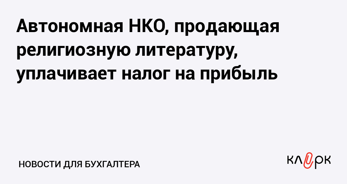 Автономная НКО, продающая религиозную литературу, уплачивает налог на прибыль