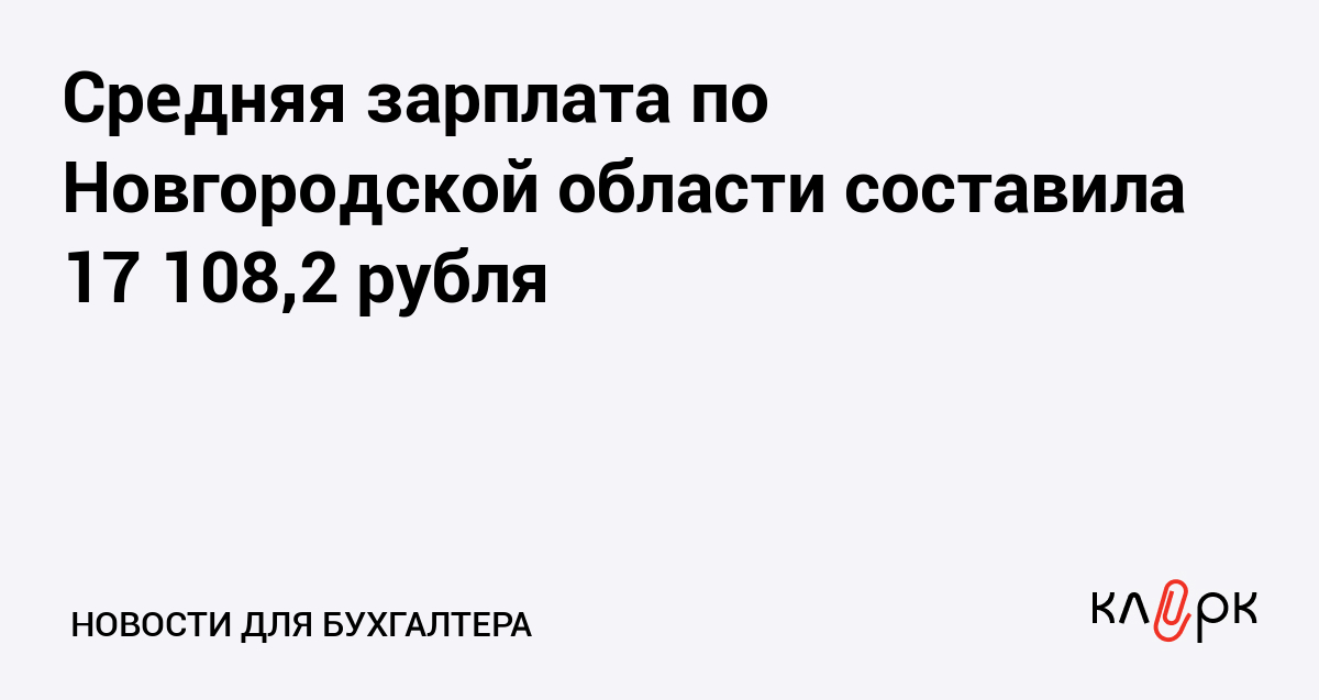 Средняя зарплата по Новгородской области составила 17 108,2 рубля