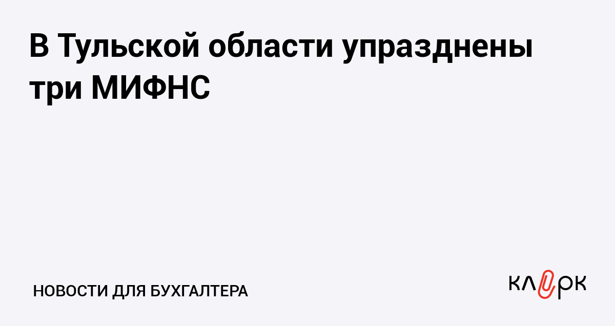 В Тульской области в результате проведения организационных мероприятий по реорганизации налоговых органов с 1 сентября 2011 года упразднены ИФНС по Зареченскому району и ИФНС по Пролетарскому району Тулы, а также МИФНС №2, 6 и 8.