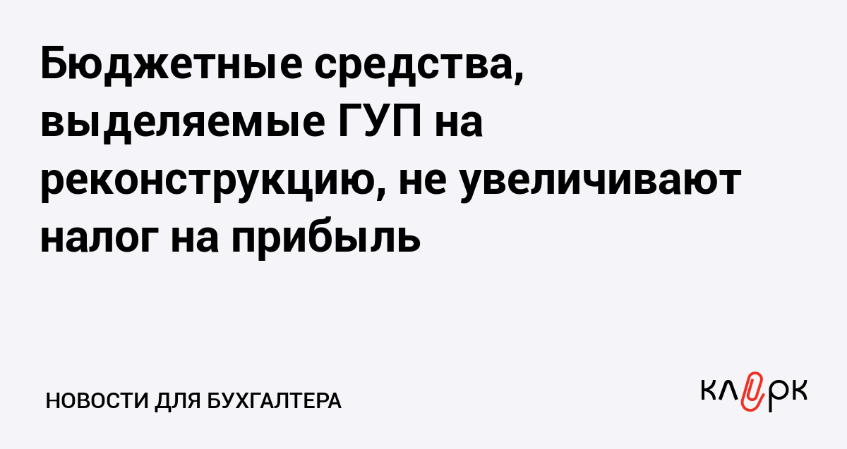 Бюджетные средства, выделяемые ГУП на реконструкцию, не увеличивают налог на прибыль