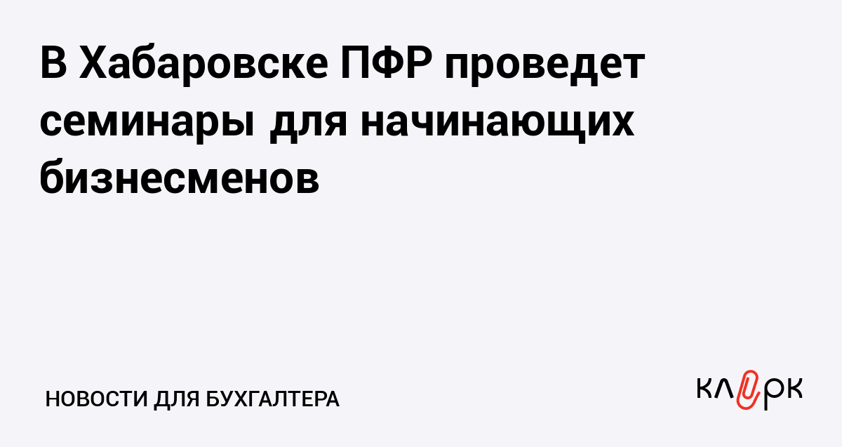 В Хабаровске ПФР проведет семинары для начинающих бизнесменов