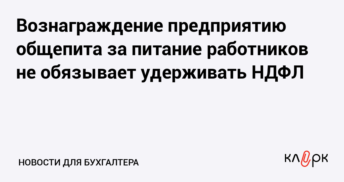 Вознаграждение предприятию общепита за питание работников не обязывает удерживать НДФЛ