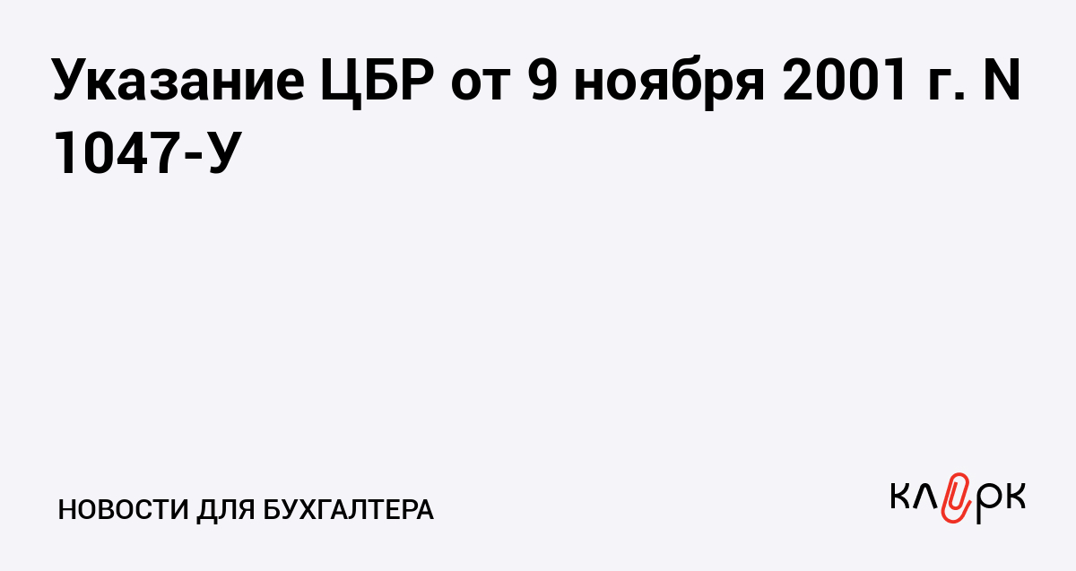 Указание ЦБР от 9 ноября 2001 г. N 1047-У