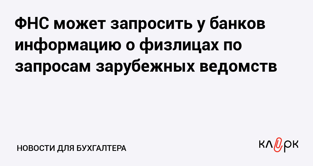 ФНС может запросить у банков информацию о физлицах по запросам зарубежных ведомств