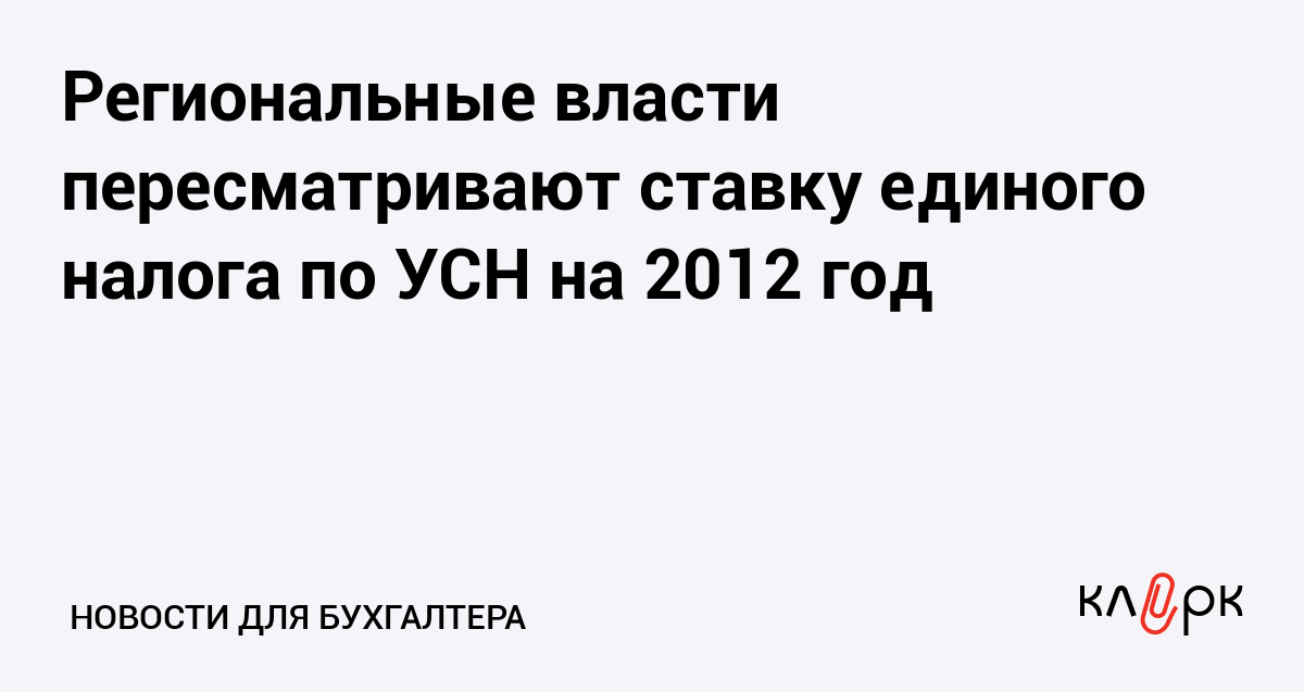 Региональные власти пересматривают ставку единого налога по УСН на 2012 год