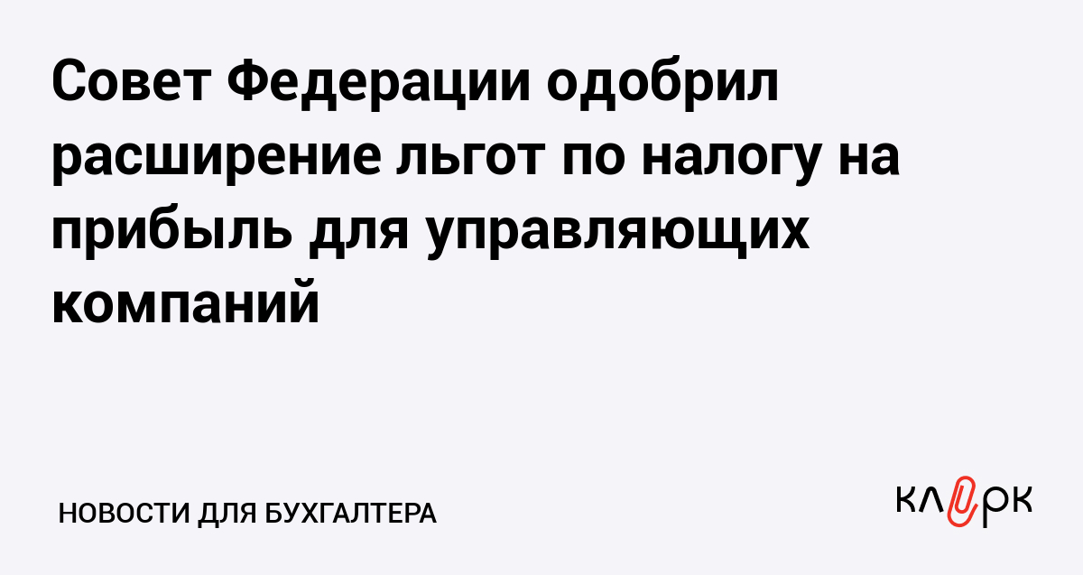 Совет Федерации одобрил расширение льгот по налогу на прибыль для управляющих компаний
