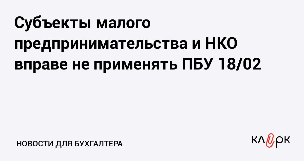 Субъекты малого предпринимательства и НКО вправе не применять ПБУ 18/02