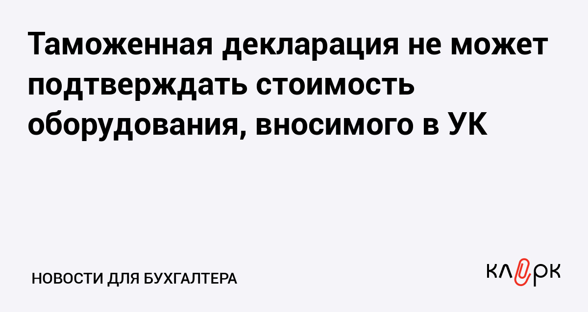 Таможенная декларация не может подтверждать стоимость оборудования, вносимого в УК