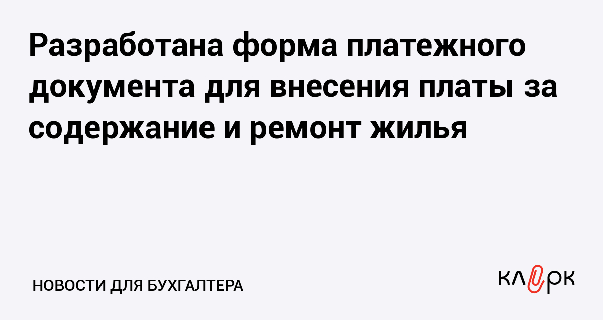 Разработана форма платежного документа для внесения платы за содержание и ремонт жилья