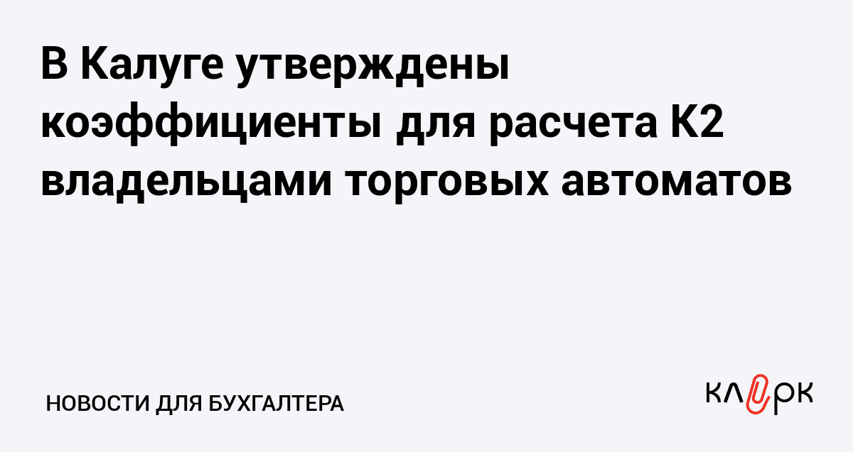 В Калуге утверждены коэффициенты для расчета К2 владельцами торговых автоматов