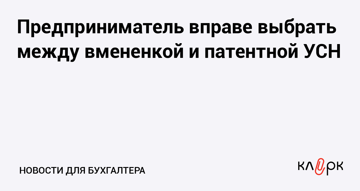 Предприниматель вправе выбрать между вмененкой и патентной УСН