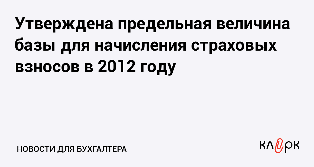Утверждена предельная величина базы для начисления страховых взносов в 2012 году