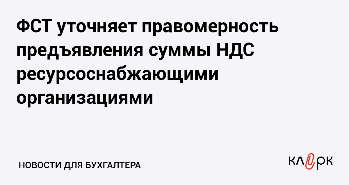 ФСТ уточняет правомерность предъявления суммы НДС ресурсоснабжающими организациями