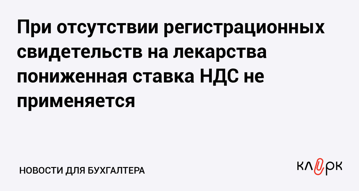 При отсутствии регистрационных свидетельств на лекарства пониженная ставка НДС не применяется
