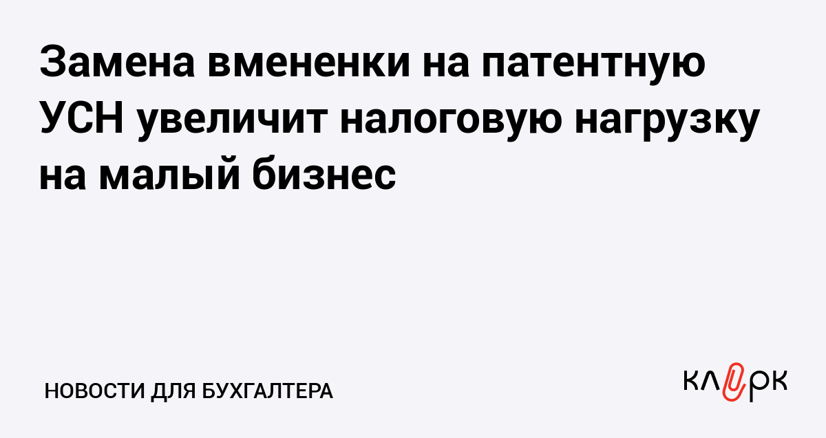 Замена вмененки на патентную УСН увеличит налоговую нагрузку на малый бизнес