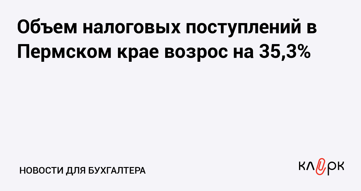 Объем налоговых поступлений в Пермском крае возрос на 35,3%