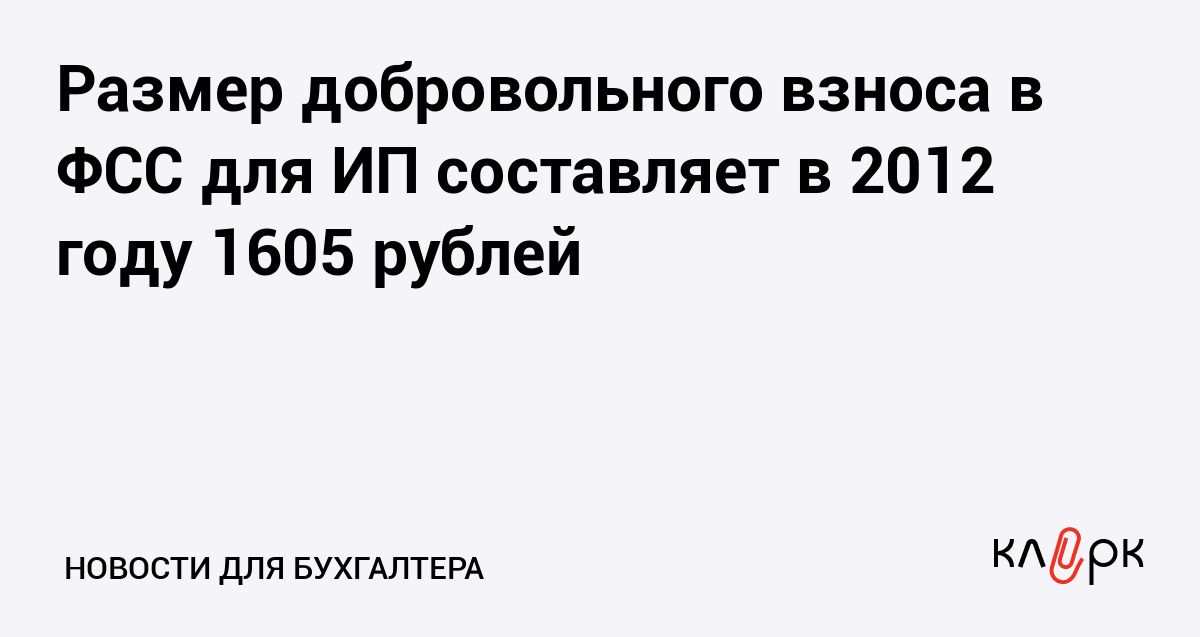 Размер добровольного взноса в ФСС для ИП составляет в 2012 году 1605 рублей